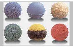 3、金剛砂膠球 金剛砂膠球分為全金剛砂膠球和半金剛砂膠球兩種。金剛砂膠球適用于清除各種結(jié)垢沉積較多的管道,但對管子有傷害,一般不長期使用,特別銅管更慎用。 有效去除硬質(zhì)結(jié)垢,如:碳酸鈣。適用于鋼管、不銹鋼管換熱器。